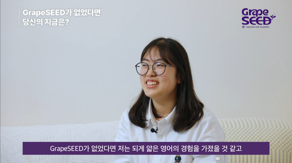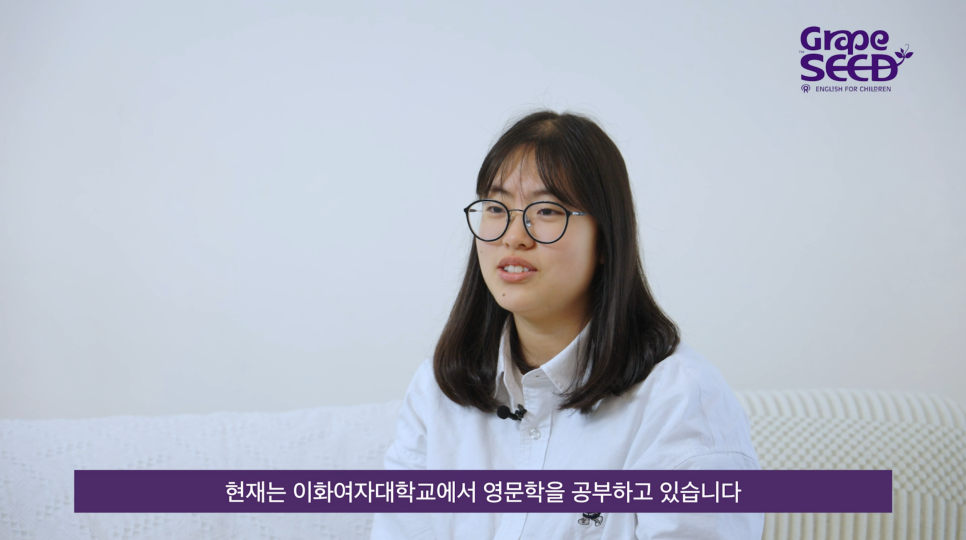 "아, 그건 유치원 시절로 거슬러 올라가는데요. 유치원에서 영어를 배우는 프로그램 중 하나가 GrapeSEED였어요. 영어를 공부라고 느끼기보단 친구들과 함께 책을 읽고, 선생님과 이야기를 나누는 과정 자체가 즐거웠죠. 덕분에 영어를 자연스럽게 받아들일 수 있었어요."