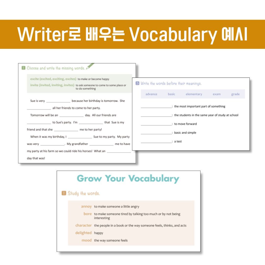 초등 고학년 단계에 맞물리는 시점인 만큼 학생들의 인지발달과 영어 어휘력 수준에 맞춘 여러 vocabulary가 등장하며, 다양한 방법을 통해 정확하고 적절한 단어의 쓰임을 배울 수 있도록 하는 단계