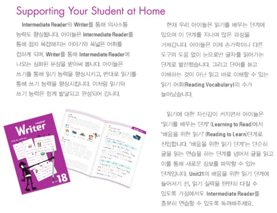 학부모님이 아이의 영어 습득 현황과 과정을 이해할 수 있도록 언어 습득 양상과 교수법에 대한 설명도 제공합니다. 이를 통해 아이가 현재 영어 습득 과정 중 어느 단계에 있는지, 어떤 언어적 표현을 활용할 수 있는지 이해하고 학습을 도울 수 있습니다.