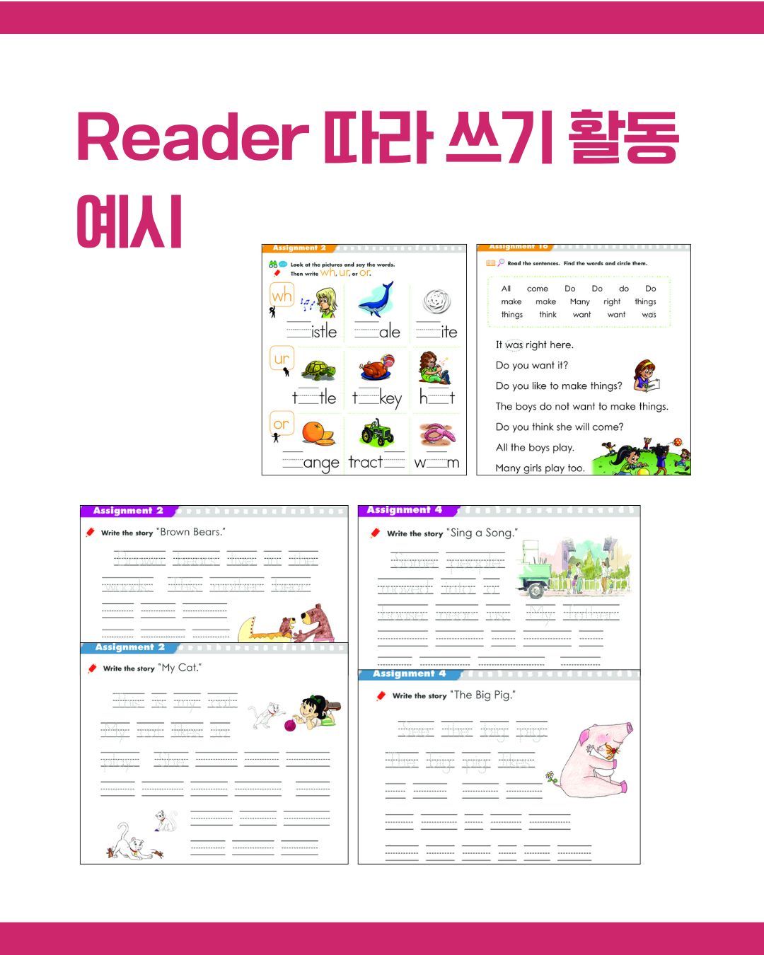 Unit 11부터는 더욱 심화된 Reader 따라 쓰기 활동이 포함됩니다. 아이들은 수업 시간에 배운 Reader를 집에서도 큰소리로 읽고 문장을 따라 써 보면서 직접 배운 표현과 어휘를