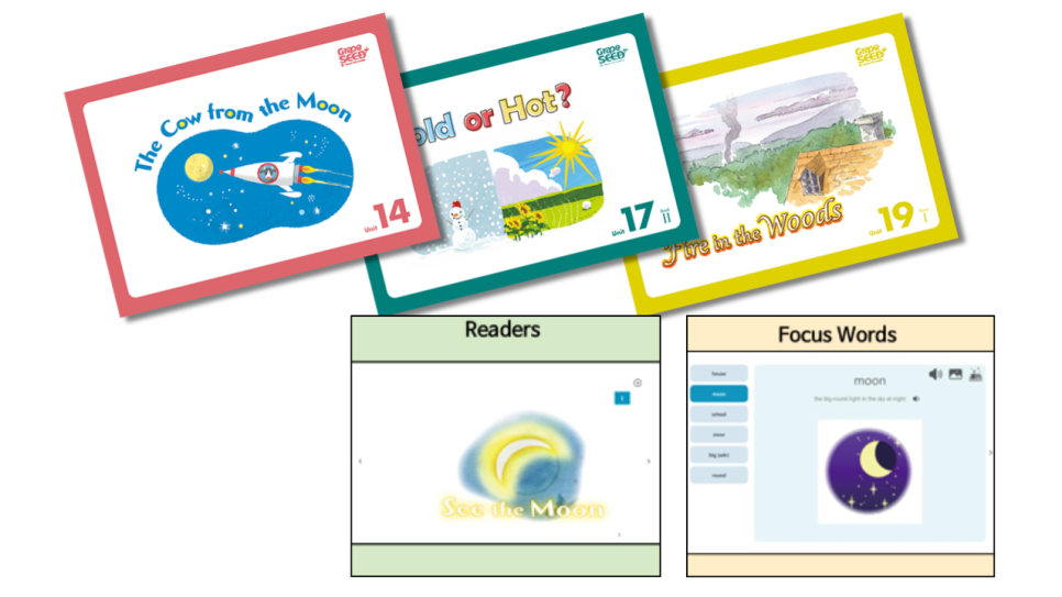먼저 학생용 앱을 통해 Reader의 주요단어와 뜻을 오디오로 들어볼 수 있어요. Focus Words라는 기능을 사용하여 Reader에서 배웠던 단어의 정확한 발음을 들으며 입으로 소리 내어 연습해 보세요. 또한 Unit 11-20까지의 Reader 각 story는 플레이리스트에 포함이 되어 있습니다. 따라서 먼저 스스로 읽어보고, 오디오 버튼을 클릭하여 각 문장을 들어볼 수도 있습니다. Reader를 통해 학생들은 스스로 읽는 훈련과 영어 학습에 중요한 듣기 능력, 그리고 영어로 사고하는 능력까지 강화할 수 있어요.
