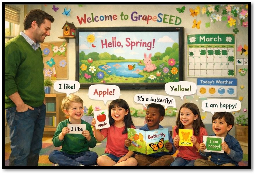 Have you noticed that the month of March brings a noticeable and welcomed shift? Daylight sticks around a bit longer, schedules fill with activities, and students arrive at school each morning with a renewed sense of energy. For young multilingual learners, springtime provides a powerful opportunity; not to reinvent instruction, but to lean into what already works and let that momentum carry learning forward. By this point in the school year, students have built familiarity with classroom routines and expectations. This consistency is especially important for language learners because predictable structures—songs, chants, stories, movement, and daily oral practice—create a safe environment where students feel confident participating, even when the language feels challenging. In March, that confidence often begins to show more clearly! In March, teachers are noticing students: joining in more quickly using phrases spontaneously engaging more willingly in partner activities These moments can be easy to overlook, but they are significant indicators of language growth. Oral language development doesn’t always arrive in neat, measurable steps…it emerges through repeated exposure, joyful practice, and meaningful interaction over time. As spring energy rises (spring fever, anyone?), maintaining consistent routines can actually help classrooms feel calmer and more productive. Students know what comes next, how to participate, and what success sounds like. Rather than pulling back on structured language practice, this is the moment to protect it. Daily routines…spoken language, movement, music, and shared stories…anchor learners while giving them space to take risks. March is also a reminder that language learning is cumulative. The repetition that felt slow in the fall often pays off in the spring, when students are ready to use what they’ve internalized. When instruction continues to spiral skills like phonemic awareness, vocabulary, comprehension, and oral fluency, students are supported without feeling pressured. As the school year speeds up, this is the perfect time to take a deep breath and to notice progress. So, take time to celebrate participation, effort, and small breakthroughs to help your multilingual learner students see themselves as the capable language learner they are, and encourage them to keep moving forward! Are you ready to learn more about how GrapeSEED can help your multilingual learners succeed in ways big and small?
