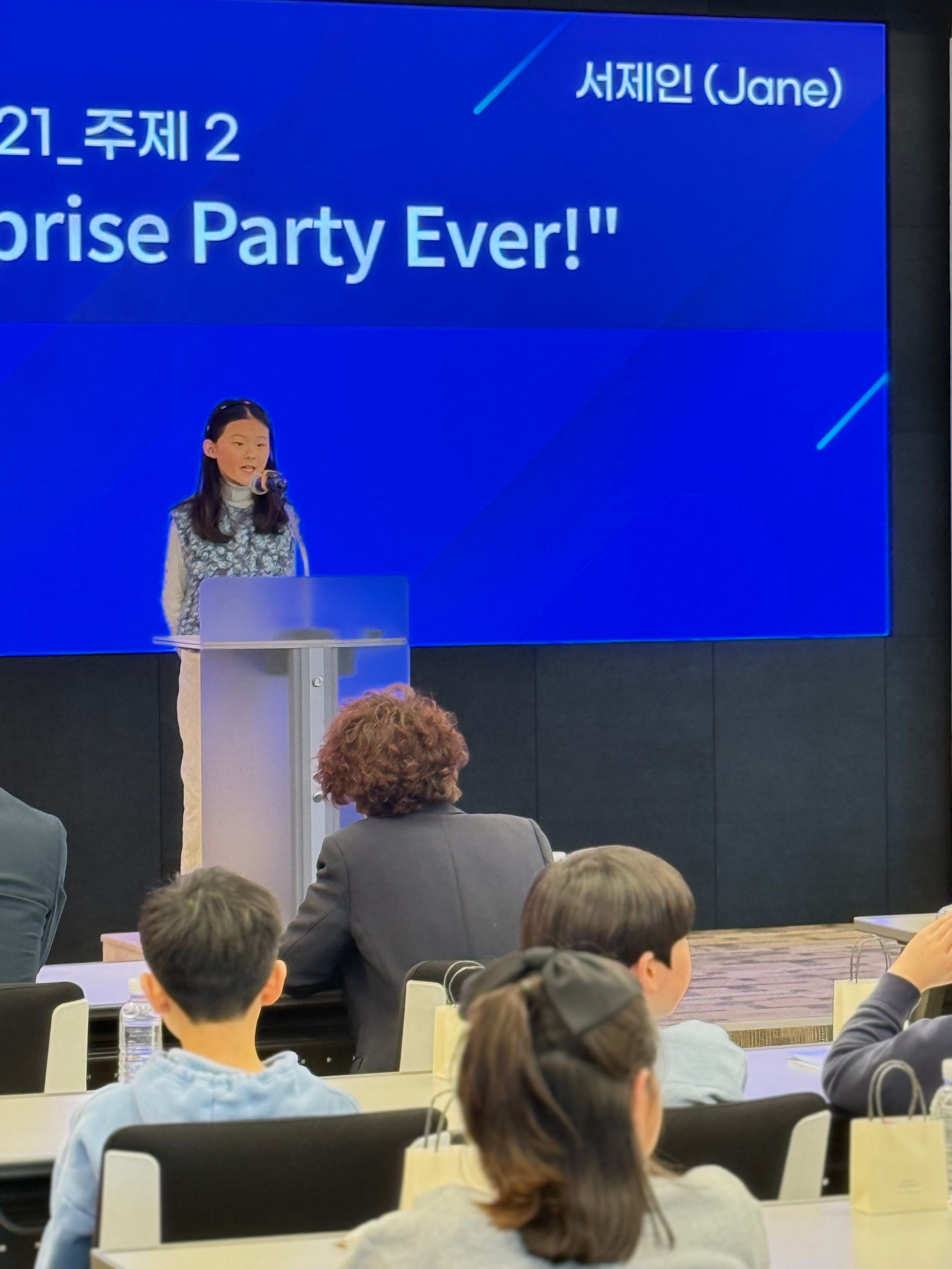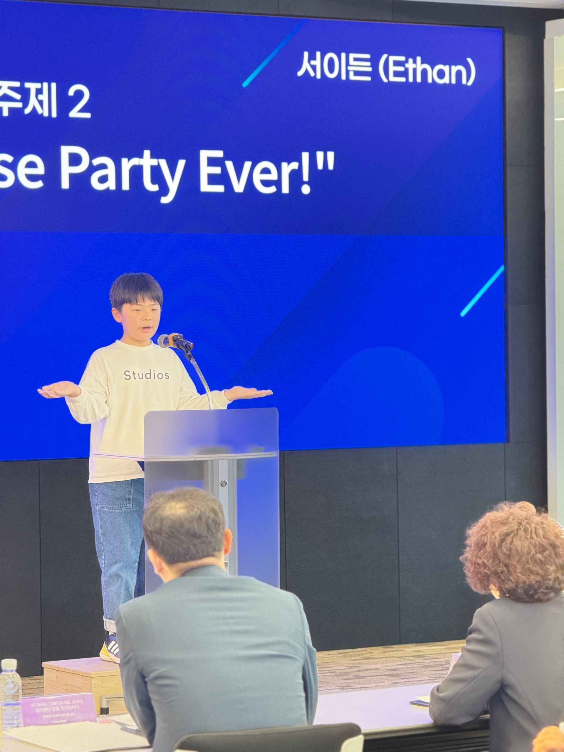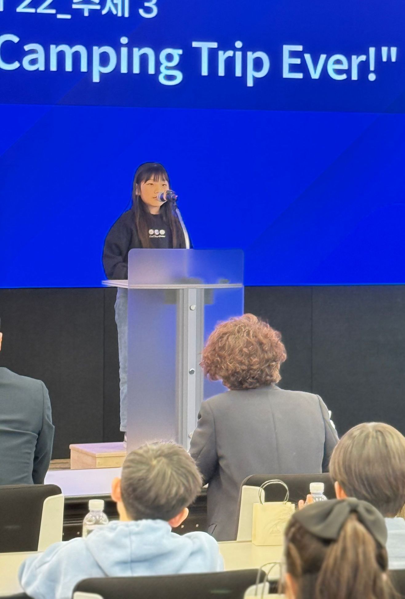 익숙하지 않은 환경 속에서도 모든 친구들이 전혀 힘든 기색 없이 열정적으로 발표해 주었습니다. 긴장감이 넘치는 순간에도 자신감 있게 발표하는 모습이 정말 인상적이었어요. 많은 친구들이 자신의 이야기를 영어로 풀어내는 데 필요한 스피치 능력을 그동안 열심히 키워온 것을 직접 확인할 수 있어서 큰 감동을 받았습니다.