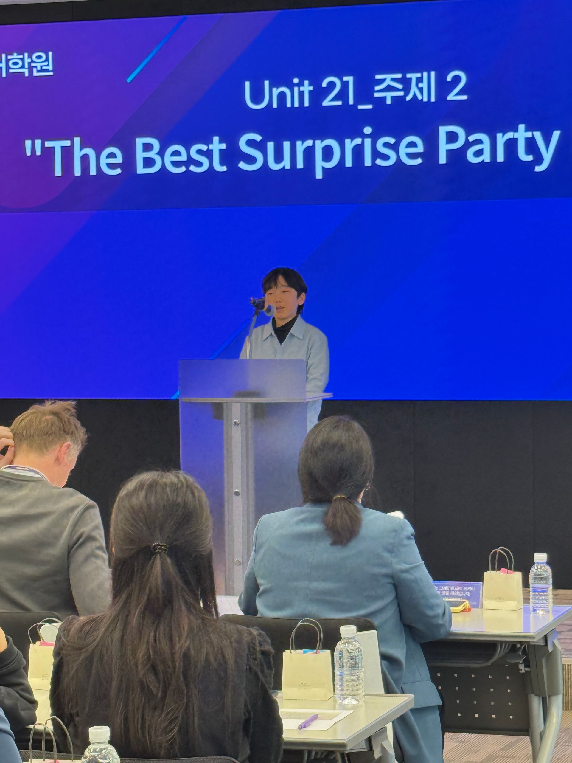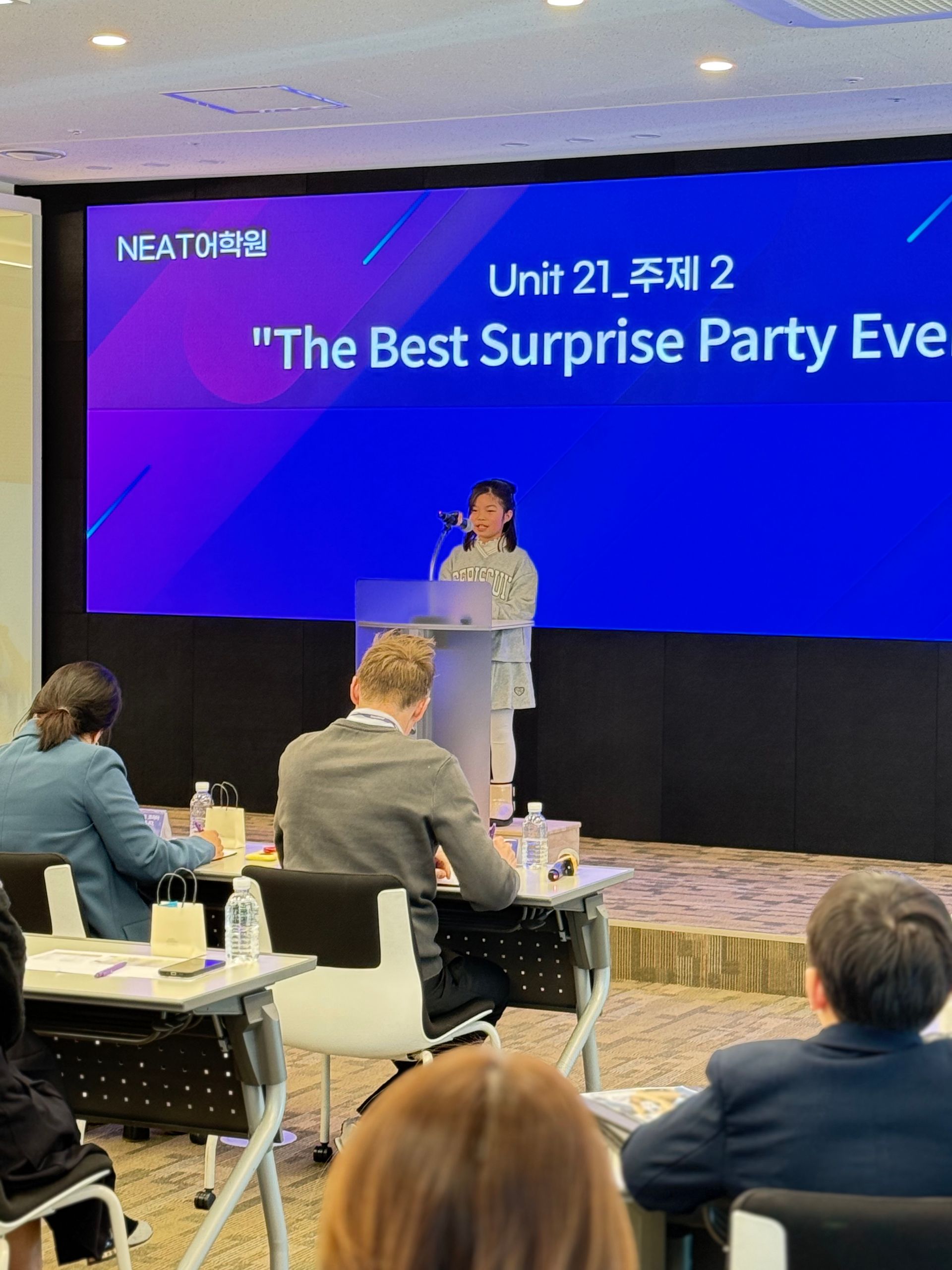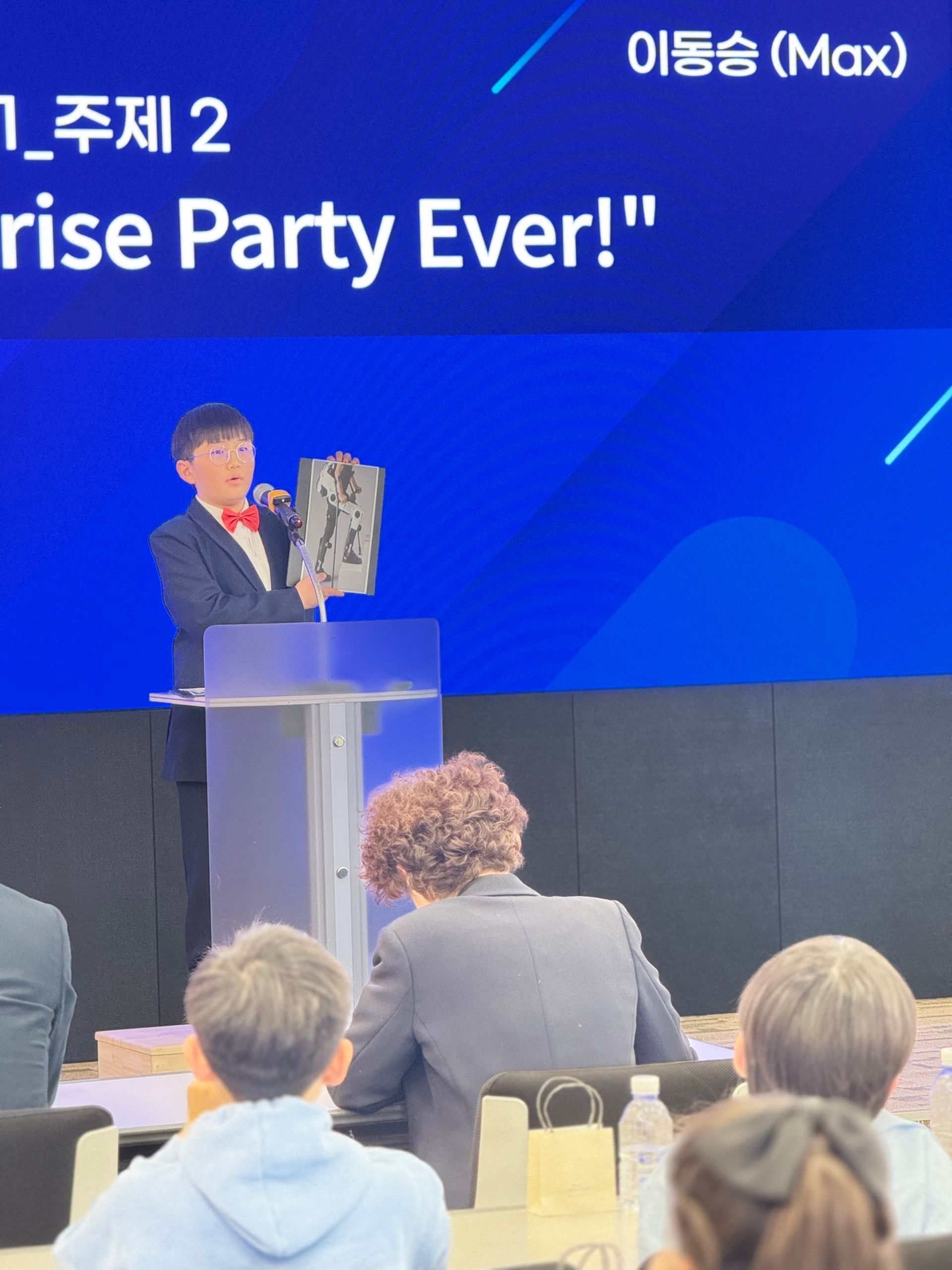 익숙하지 않은 환경 속에서도 모든 친구들이 전혀 힘든 기색 없이 열정적으로 발표해 주었습니다. 긴장감이 넘치는 순간에도 자신감 있게 발표하는 모습이 정말 인상적이었어요. 많은 친구들이 자신의 이야기를 영어로 풀어내는 데 필요한 스피치 능력을 그동안 열심히 키워온 것을 직접 확인할 수 있어서 큰 감동을 받았습니다.