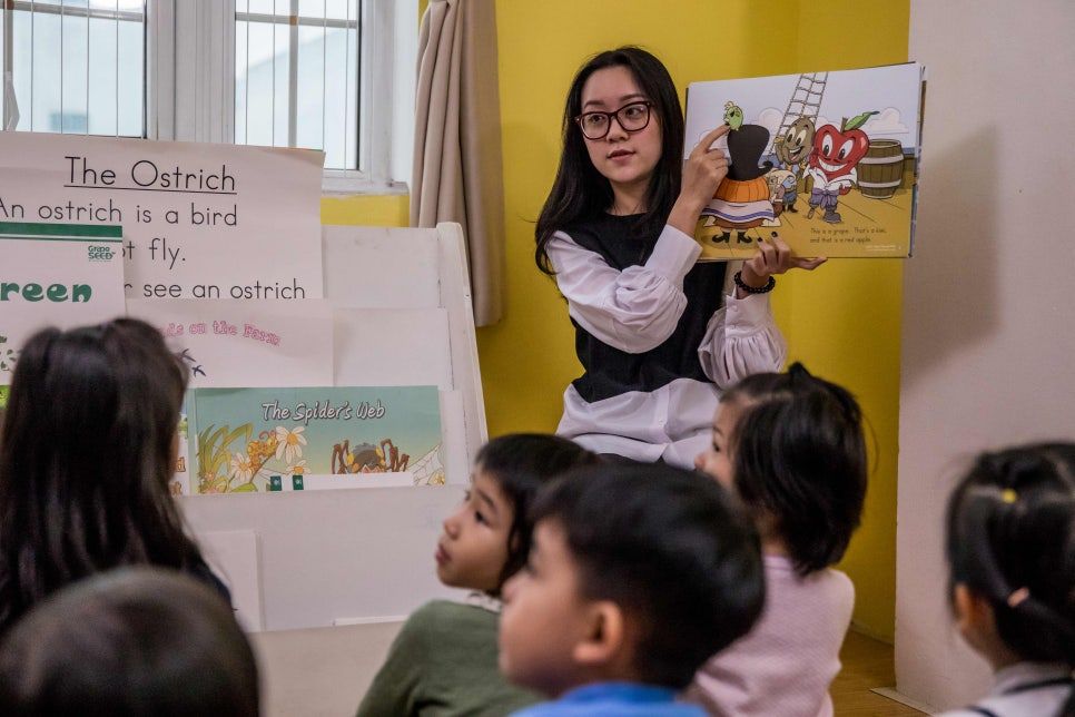 그레이프시드 수업은 선생님이 교재 내용을 읽거나 말하는 것으로 시작됩니다. 아이들은 선생님의 영어를 들으며 그림이나 상황을 상상하고, 말하는 내용에 집중합니다. 또한 선생님은 수업 전후에 간단한 질문이나 대화를 통해 아이들의 흥미와 집중을 끌어내면서 이해를 돕습니다.