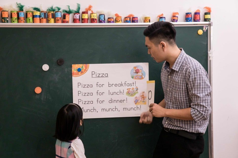다음 단계에서는 아이들이 조금씩 자신의 목소리로 영어를 말하기 시작합니다. 교재 속 단어나 표현을 따라 말하거나 노래하면서 자연스럽게 영어 사용의 첫걸음을 뗍니다. 이때 선생님은 아이들이 편안하게 말할 수 있도록 발음 교정이나 모범을 보이며 든든한 지원군이 되어 줍니다.