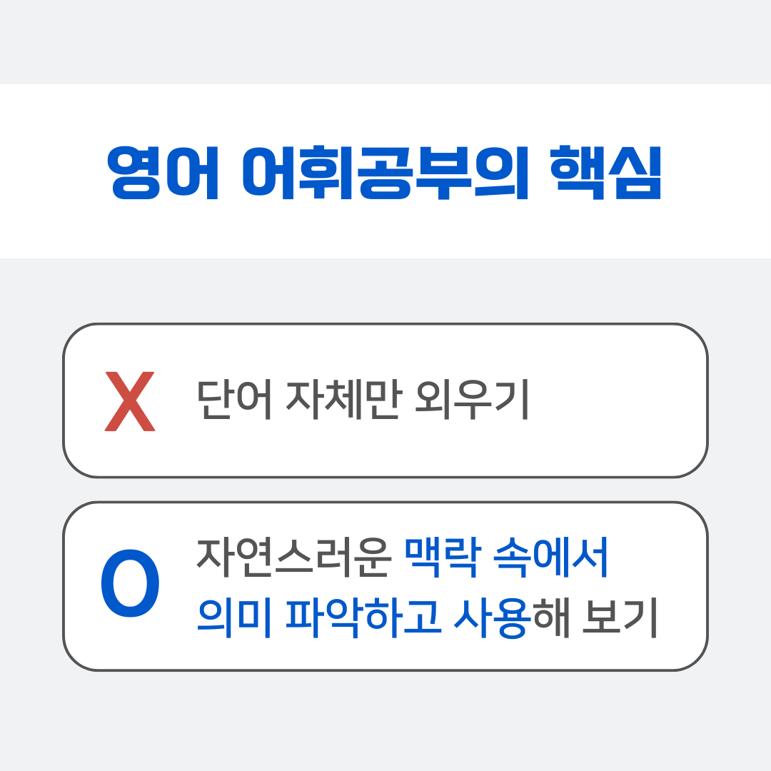 단어 자체만 외우기가 아닌, 자연스러운 맥락 속에서 의미를 파악하고 사용해 보기