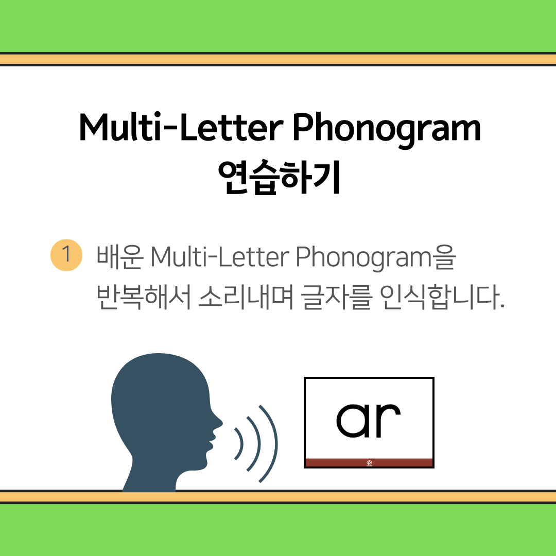 1. 배운 Multi-Letter Phonogram을 반복해서 소리내며 글자를 인식합니다.