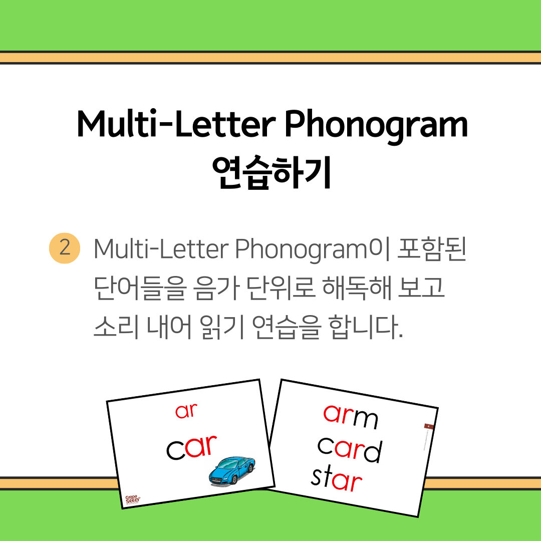 Multi-Letter Phonogram을 익히면 더 많은 단어의 해독과 음가 인식을 수월하게 할 수 있습니다.