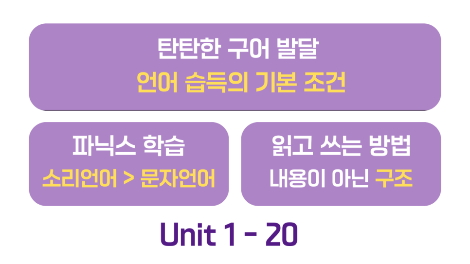자신이 발음하는 소리를 문자로 옮길 수 있는 기초를 배우고, 이를 기반으로 읽고 쓰는 방법을 배우게 됩니다. 단어에서 확장하여 문장의 구조를 인식하고